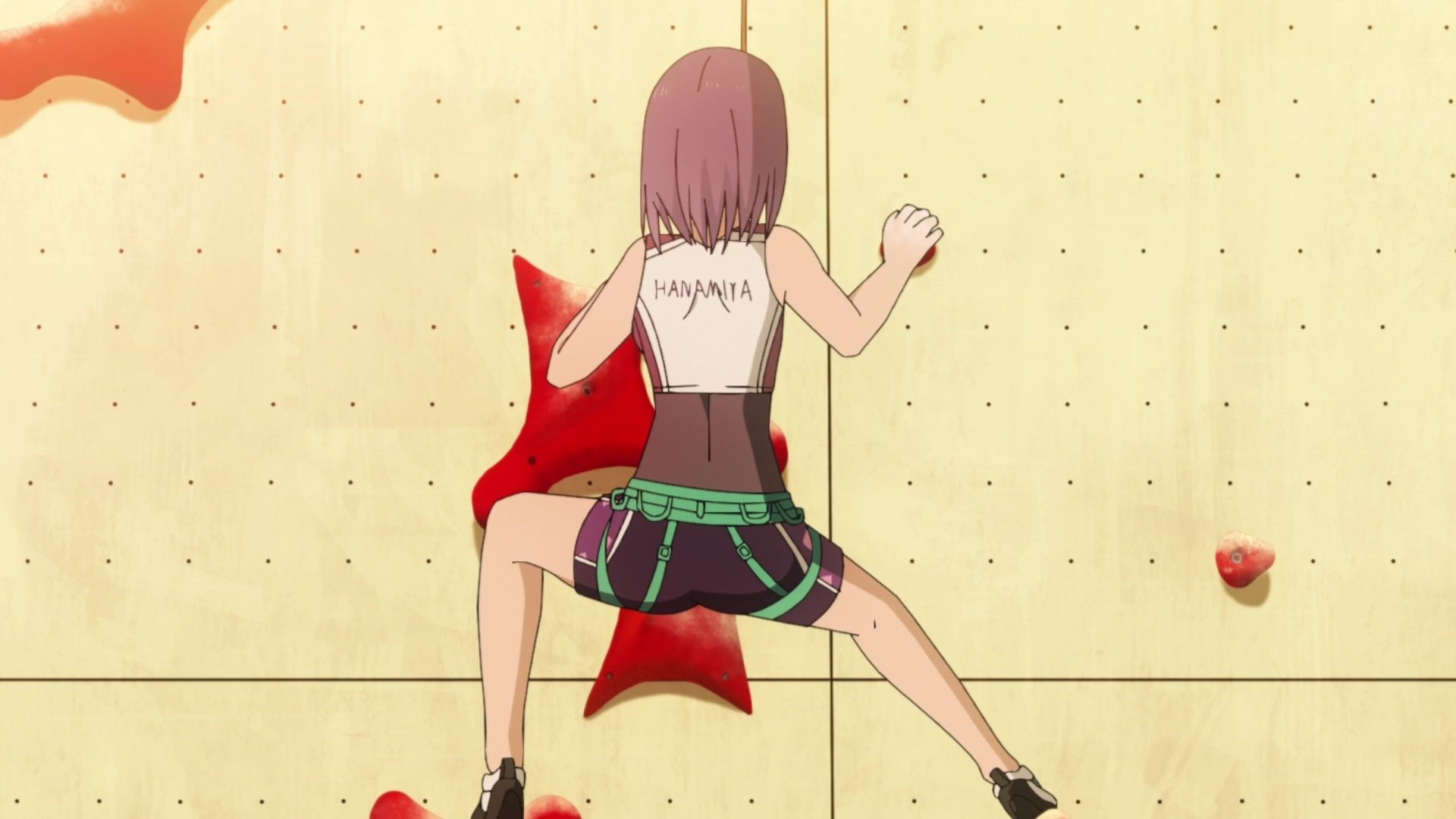The Hanamiya girls meet up at a speed wall for their speed climbing training. After Jun explains the rules of speed climbing to Konomi, she completes the climb where she learns that she needs to analyze the nitty-gritty before she can improve her time. Sayo later tells Konomi about a multi-school speed training camp. Konomi and Jun arrive at the camp where they encounter Akane, Kurea, and Maruno.