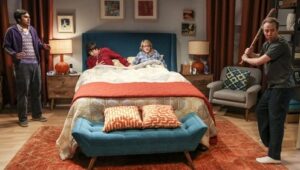 Leonard and Penny renew their vows, this time inviting their friends and family for wedding party; they also learn that marriage is about compromise, and figure out how to support each other. Sheldon and Amy experiment to take their relationship to the next level, and after an emotional struggle they move in together in Penny’s old apartment. Howard and Bernadette realise that being a parent is a full-time job, but with the help of their friends they manage to find joy in raising their child. When his friends tell him he’s extremely spoiled, Raj decides to stop taking his father’s money and learn how to make ends meet.